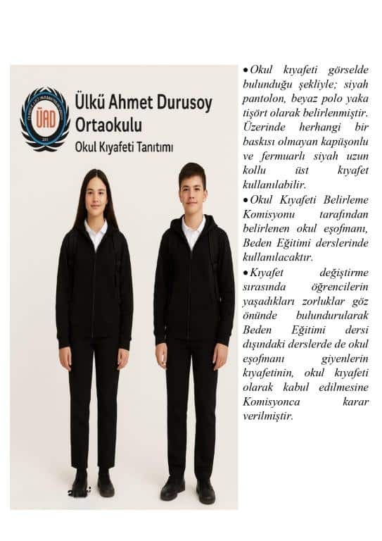2025-2026 Eğitim Öğretim Yılı okul kıyafetlerimiz tüm veli ve öğrencilerimizin görsel olarak bilgisine sunulmuştur.